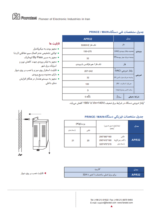 - خارج شدن ولتاژ ورودی از محدوده ی 275~150 ولت (جهت جلوگیری از آسیب رسیدن به مصرف کننده